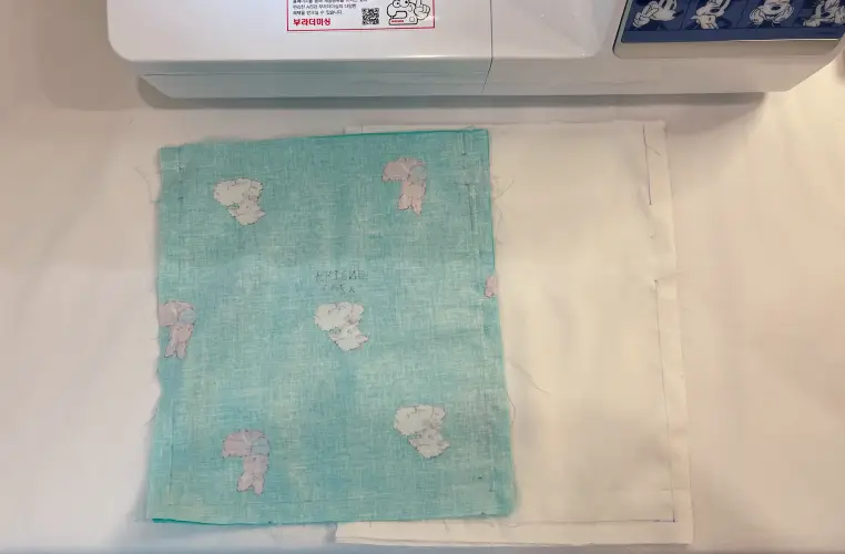 겉감과 안감을 겉끼리 만나게 포개고 둘레를 1cm 시접으로 재봉해 주세요.