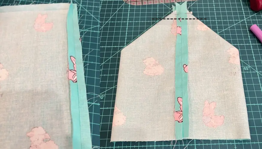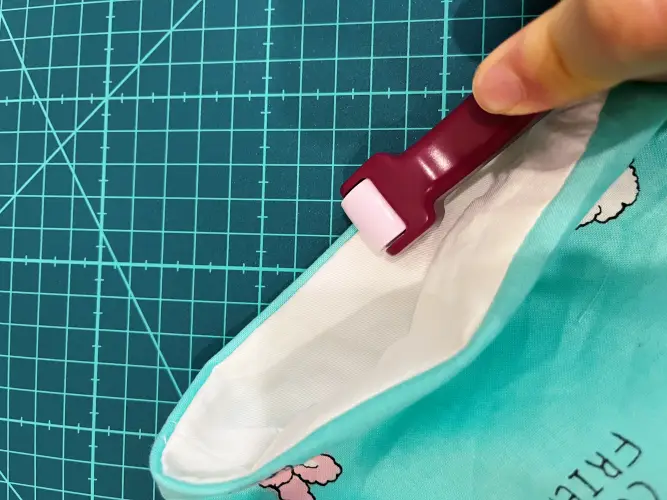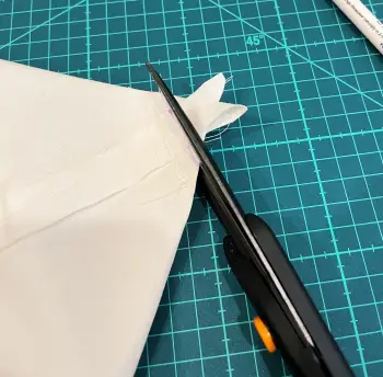 재봉 완료한 후에는 시접 1cm를 남기고 잘라내 주세요.