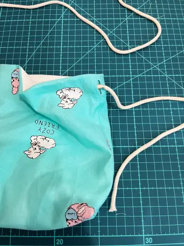 양쪽으로 끈을 끼우고 나면 미니 스트링 파우치 완성!