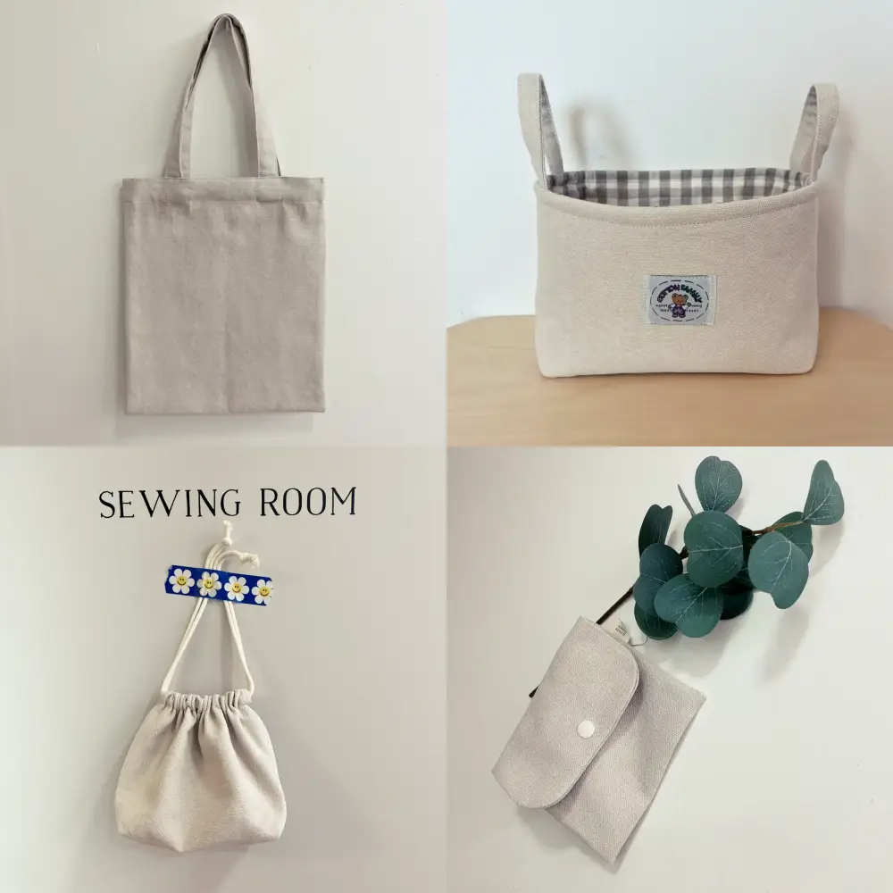 미싱 입문반 첫 작품들 (에코백, 바구니, 스트링파우치, 카드지갑)