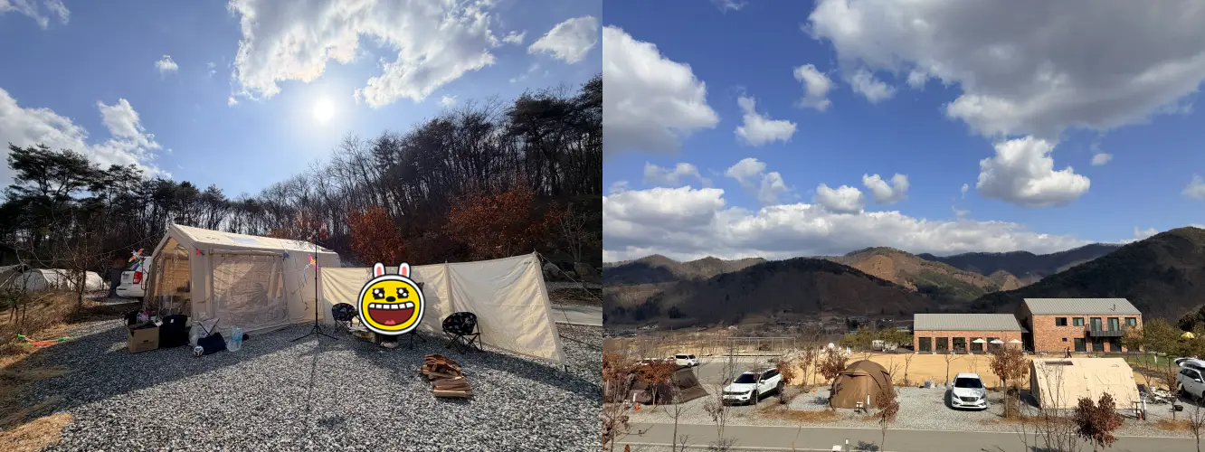 다른 캠핑장들과 비교 했을 때 확연 히 넓은 사이트가 매우 만족 스러웠어요. 대형 타프나 텐트도 여유롭게 피칭할 수 있어 쾌적한 캠핑이 가능했습니다.