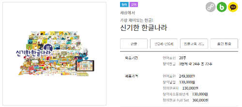 한글나라 가격 76,000원 (1회당 수업 20분, 교재구매필요)